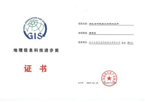 地理信息科技進步獎---湖北省智慧國土構(gòu)建與應(yīng)用一等獎